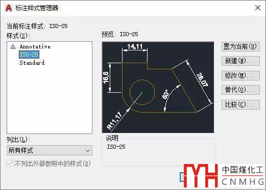 輸入D,回車,選擇ISO-25,單擊“修改”按鈕,將ISO-25的標注特征比例設(shè)置為使用注釋性。