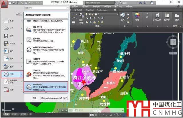關(guān)閉打印對(duì)話框,在文件菜單或左上角圖標(biāo)的下拉菜單中選擇:打印》管理繪圖儀(或者是繪圖儀管理器),如圖所示。