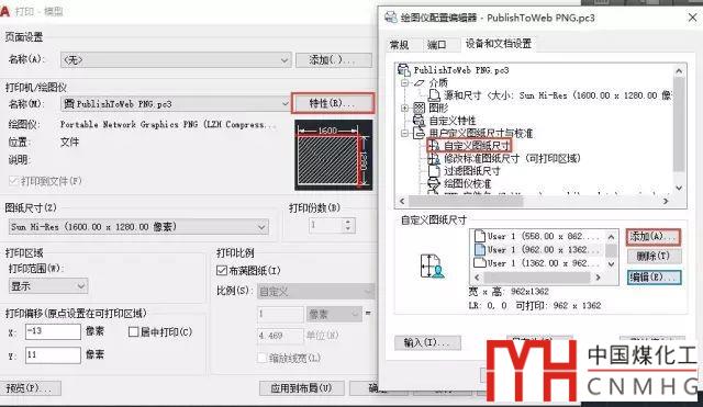 如果圖中未保存頁(yè)面設(shè)置,選用驅(qū)動(dòng)時(shí)會(huì)使用一個(gè)默認(rèn)的設(shè)置,可以單擊打印機(jī)列表后面的特性按鈕,打開(kāi)特性設(shè)置對(duì)話框。再特性對(duì)話框中單擊“自定義圖紙尺寸”,下面會(huì)顯示已經(jīng)定義好的尺寸,我們可以添加尺寸或編輯現(xiàn)有尺寸。