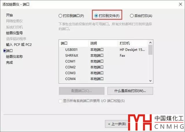 繼續(xù)單擊下一步,直到顯示選擇端口的頁(yè)面,因?yàn)檫@是虛擬打印驅(qū)動(dòng),也就是會(huì)將打印結(jié)果輸出為文件而不是打印機(jī)的端口,因此這里務(wù)必要選擇”打印到文件“,如圖所示。