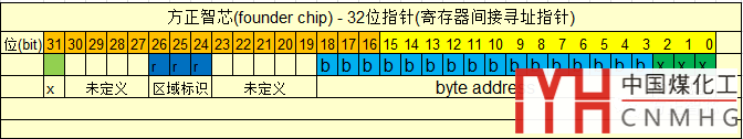 其中,第0~2位是被尋址地址的位(bit)編號(hào);第3~18位是被尋址地址的字節(jié)(Byte)編號(hào);第24~26位,是被尋址地址的區(qū)域標(biāo)識(shí)(編號(hào));第31位是尋址的類型,“0”表示區(qū)域內(nèi)間接尋址,“1”表示區(qū)域間間接尋址。