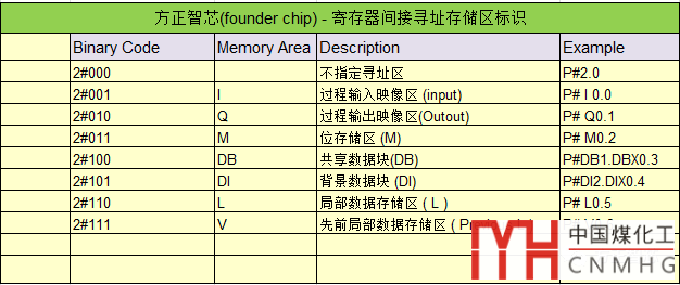 所謂區(qū)域間尋址,是指指針中不僅包含了尋址的存儲(chǔ)區(qū)的字節(jié)編號(hào)和位編號(hào),還包含了存儲(chǔ)區(qū)的標(biāo)識(shí)符(第24~26)代碼。存儲(chǔ)區(qū)標(biāo)識(shí)符用來(lái)指定尋址區(qū)域,比如:I、M、Q等,具體編號(hào)如下圖: