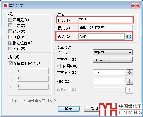 而雙擊屬性文字會彈出“編輯屬性定義”對話框,如下圖所示。
