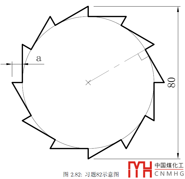 這張圖不難,鋸齒的數(shù)量是12個(gè),畫(huà)一條半徑,然后過(guò)端點(diǎn)畫(huà)一條切線,然后環(huán)形陣列就可以了。當(dāng)然也可以畫(huà)個(gè)思路,比如從12邊形及外接圓開(kāi)始。大家可以先畫(huà)一下,不會(huì)或者要對(duì)答案再看下面的視頻。
