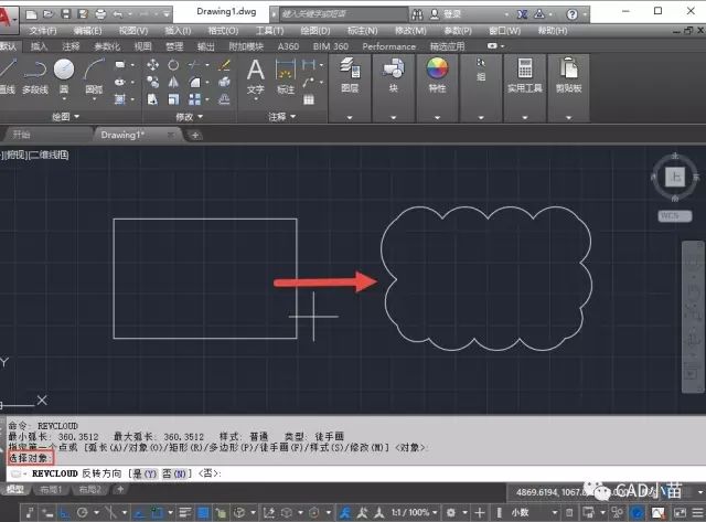 矩形和多邊形是修訂云線的兩個特殊形式,可以說是修訂云線的子命令,所以我們還是來介紹各版本都有的徒手畫的操作步驟。