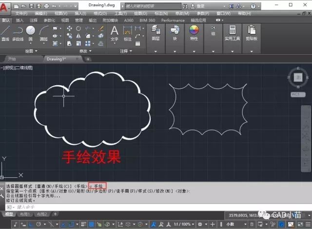 CAD的命令都是這樣,一開始因?yàn)闈M足某種需求開發(fā)了這個命令,用戶在使用的過程中,會發(fā)現(xiàn)徒手畫云線不太方便,而且不太好看,于是就有了對象以及后來的矩形和多邊形選項(xiàng);云線用于標(biāo)記需修訂的區(qū)域,為了更顯眼,于是后來增加了手繪的模式。
