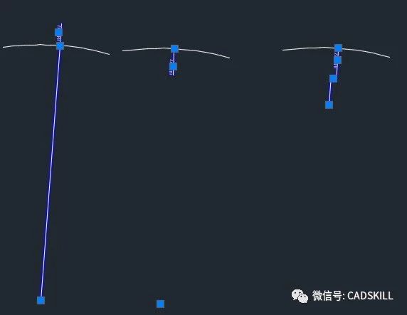 不過(guò)這兩種形式的半徑標(biāo)注都會(huì)在圓心處有一個(gè)夾點(diǎn),如下圖所示。