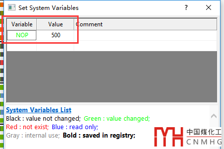 修改方法:打開Tools-->System variables菜單,在Variables下輸入NOP,后面的數(shù)字改為500或者其他較大的數(shù)。