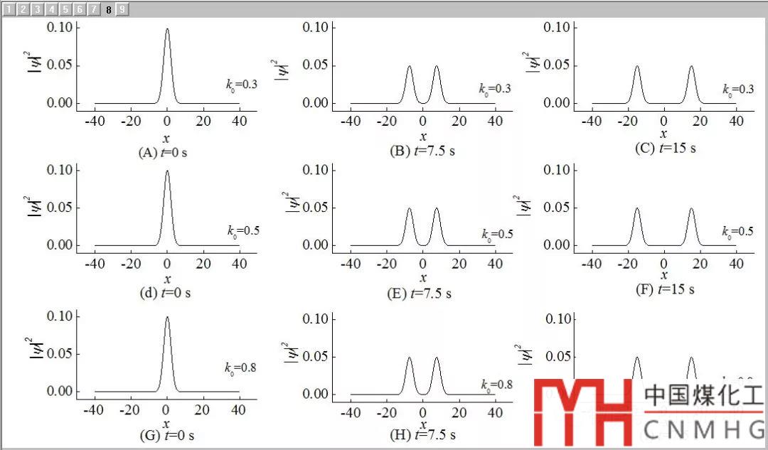 4個(gè)圖分別討論了在某種條件下,不同初動(dòng)量(3個(gè)值)、不同光速(5個(gè)值)冷原子隨時(shí)間(3個(gè)時(shí)間t=0、7.5、15 s)的演化。例如圖1中采用9個(gè)圖層,每個(gè)圖層放置1條曲線。