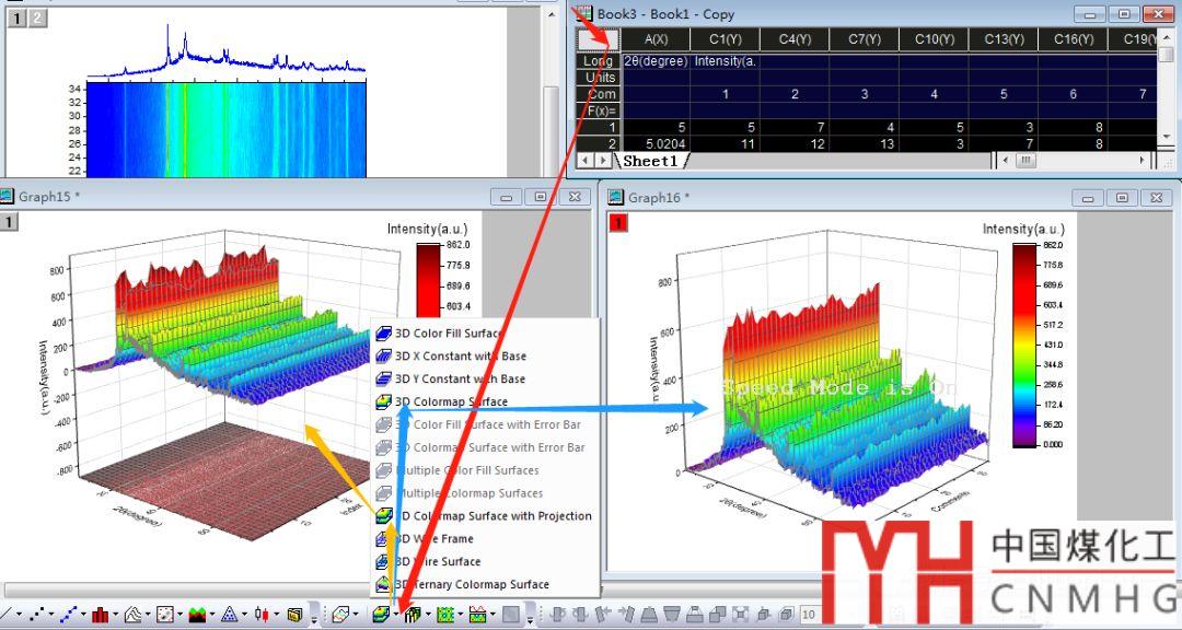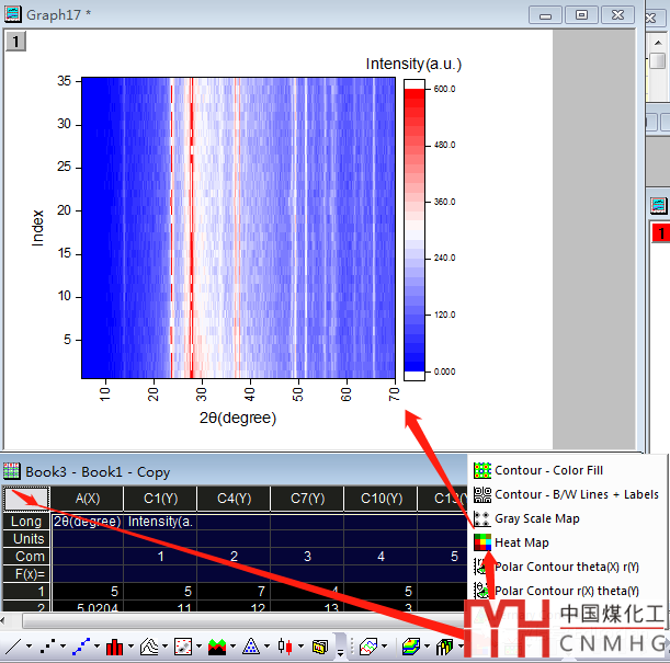 模板|Origin繪制Contour原位XRD-GC圖