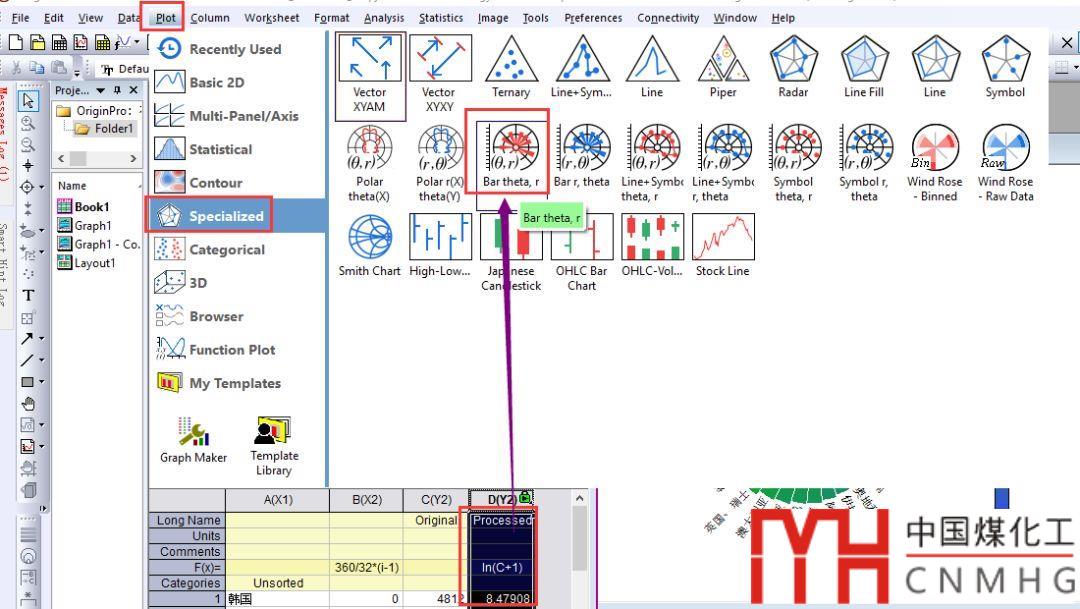 在最新的OriginLab OriginPro 2020b Beta版中,增加了極坐標系中的條形圖繪圖模板,正好可以用來繪制上述圖形。