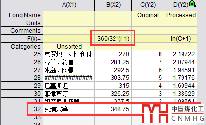 在分組數據后添加一列,在公示欄填入360/32*(i-1),即將所有的分組數據均勻地分散在一個圓周上。
