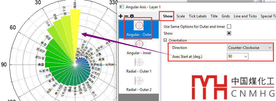 首先將Direction設為Counter-clockwise,Axes Start at設為90。