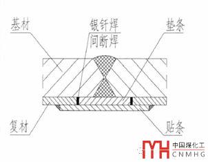 鋯和鋼是不相熔焊的而且鋼不能進(jìn)入鋯焊縫,鋯不能進(jìn)入鋼焊縫。鋯復(fù)合板鋯層的焊接節(jié)點常采用蓋板式,如下圖所示。因而鋯復(fù)合板制容器焊縫數(shù)量多,而且鋯的線膨脹系數(shù)遠(yuǎn)小于鋼,升溫時上述鋯蓋板單獨承受熱應(yīng)力(復(fù)合板處因為有結(jié)合強度,熱應(yīng)力可以由結(jié)合層承受),容易出現(xiàn)焊縫開裂、滲漏。因而有必要采用熱氣循環(huán)進(jìn)行檢驗。(見NB/T47011標(biāo)準(zhǔn)釋義第二章、第十一章)