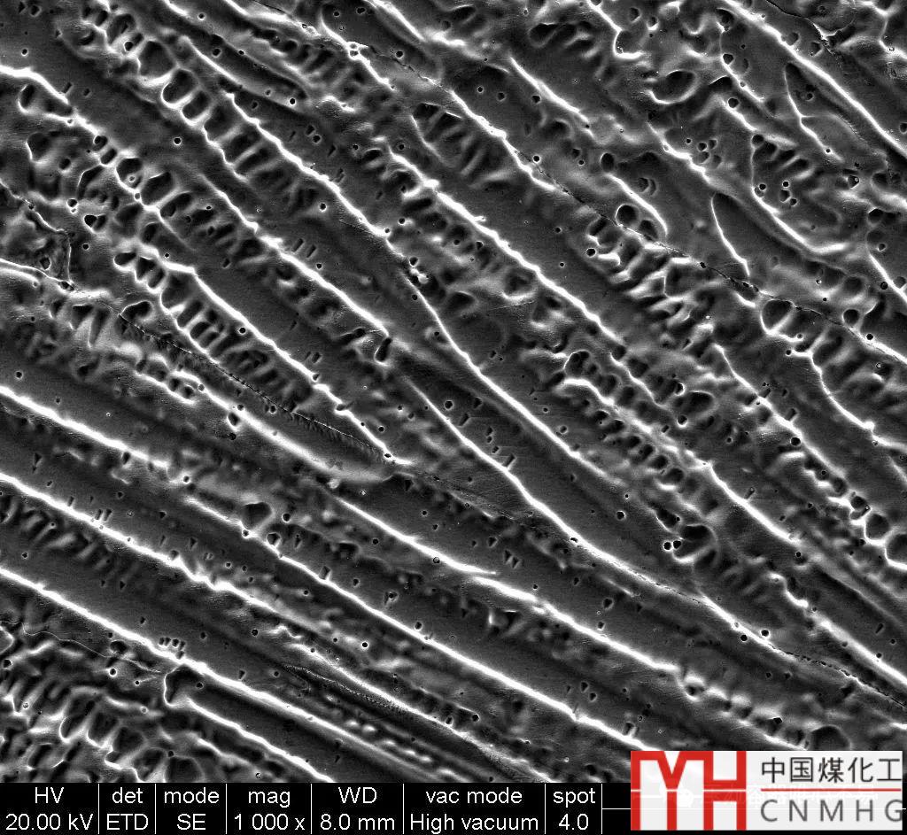 從1000倍的放大倍數(shù)來(lái)看,在焊縫金屬中幾乎看不到第二相析出物。進(jìn)一步放大到10000倍以后,完全看不到任何白色析出物。