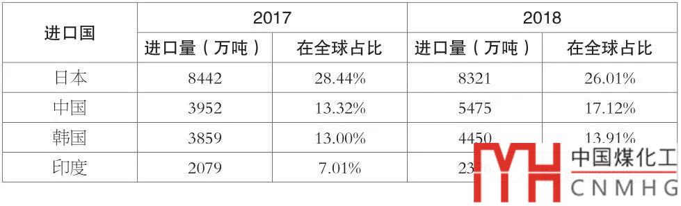 表2 2017~2018年日、中、韓、印LNG進(jìn)口情況