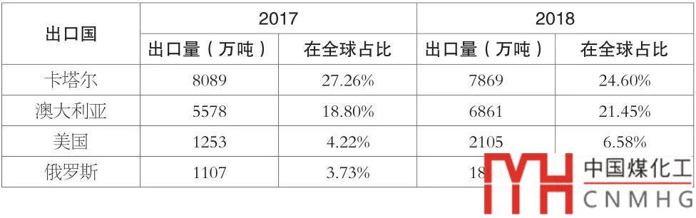 表1 2017~2018年卡、澳、美、俄LNG出口情況