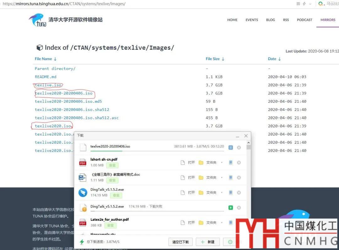 https://mirrors.tuna.tsinghua.edu.cn/CTAN/systems/texlive/Images, 然后點擊任何一個擴展名為.iso,3.7GiB大小(三個iso文件除了命名以外,沒有區(qū)別)的鏡像文件下載到電腦本地,記住保存的位置。