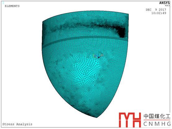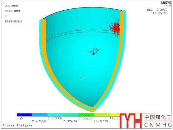 上回說(shuō)到牛腿的計(jì)算,領(lǐng)導(dǎo)有一個(gè)新想法,筒體上催化劑有兩層,下層靠近下封頭,離下封頭非常近,不能不考慮下封頭的影響啊。你再做個(gè)模型算算封頭的影響吧。對(duì)了,下層壓降比較大,你就按照40KPa的壓降來(lái)算吧。