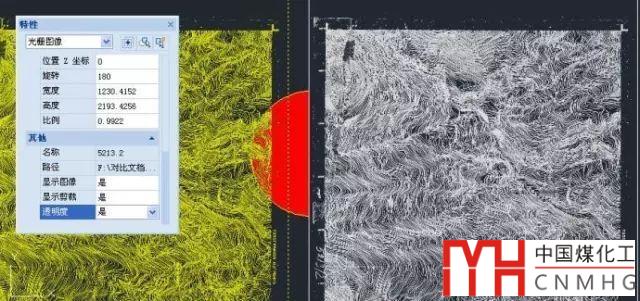 CAD圖像透明不僅可以處理上面這種透明圖像,一些掃描的地形圖存成單色的TIF文件,CAD可以自動處理成透明的效果,并且可以調整線條的顏色,如圖所示就是同一TIF圖像不透明及設置透明和顏色的效果對比。