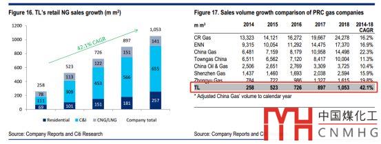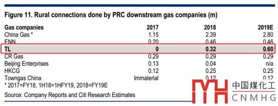 花旗認(rèn)為,2019年至2021年,天倫燃?xì)?,800萬-1.8億立方米的銷氣量增加將來自新增鄉(xiāng)鎮(zhèn)用戶接駁,同時銷氣毛差為0.4元/立方米。