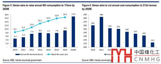 據(jù)悉,河南省內(nèi)有7個城市屬于“2+26”城市,并有2個城市位于汾渭平原,所以在解決空氣污染問題上面臨著巨大的環(huán)保壓力。在這樣的高壓背景下,河南省政府計劃將全省的天然氣用氣量從2016年的93億立方米提高至2020年的170億立方米,復(fù)合年增長率為16.3%。同時,全省的煤炭消耗將從2016年的2.32億噸下降至2020年的2.13億噸,復(fù)合年下降率保持在2%左右。