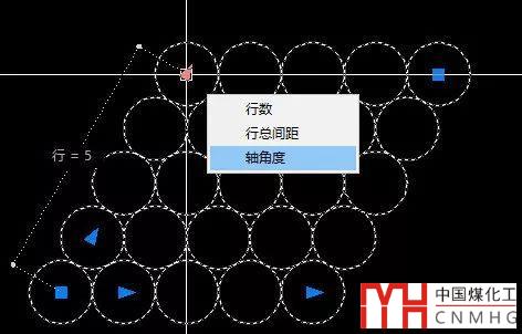 其實不用特性面板,通過陣列的夾點的動態(tài)菜單也可以直接設(shè)置軸角度,如下圖所示。