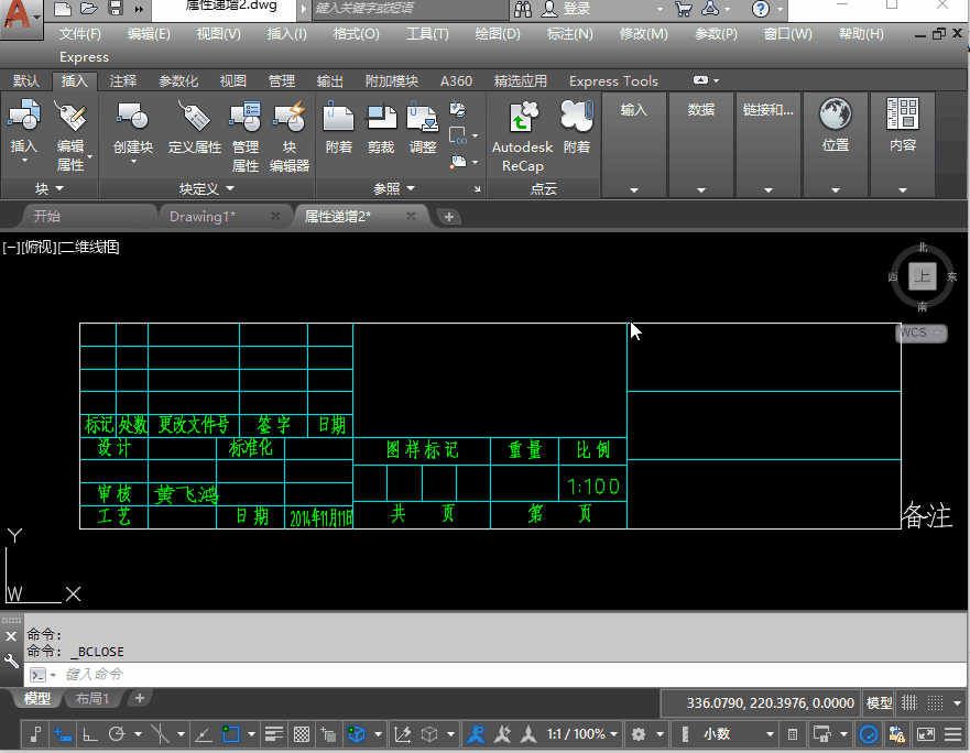 根據(jù)需要調(diào)整好順序后,關(guān)閉塊編輯器并保存修改就可以了,但需要注意的是之前已經(jīng)插入的塊參照的屬性屬性是不變的,只有新插入的圖塊的屬性順序才會變。下面我們就通過動圖來看操作步驟和修改后的效果。