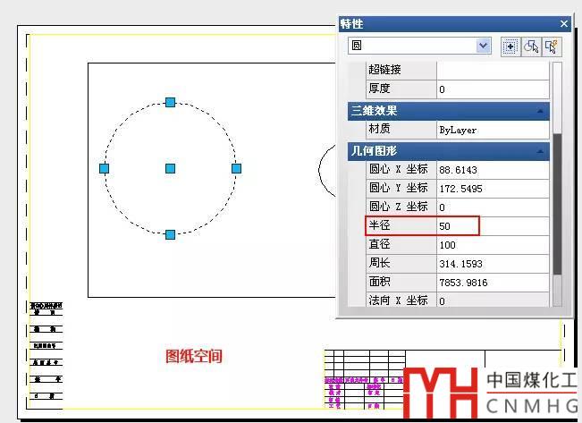 從模型空間轉(zhuǎn)換到圖紙空間,先要激活視口才能選擇轉(zhuǎn)換的圖形,轉(zhuǎn)換時同樣也會使用激活視口比例,不過換算方式是反過來的,例如模型空間中一個半徑為50的圓,是偶比例為1:10,那轉(zhuǎn)到圖紙空間的圓的半徑就會變?yōu)?。