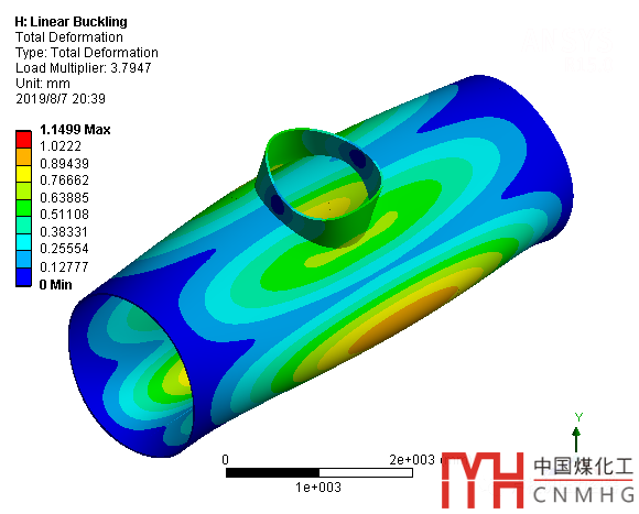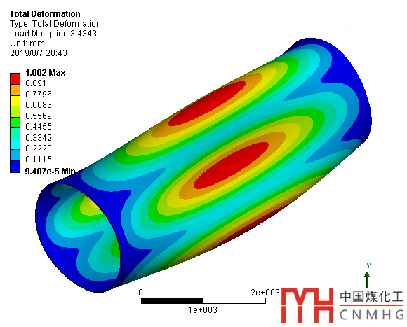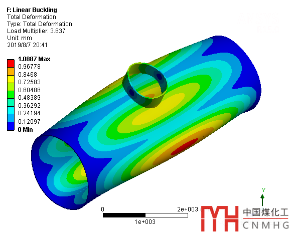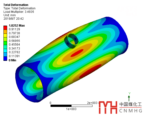從表中,可以看出,開孔接管能夠提高圓筒的抗外壓失穩(wěn)能力。分析結(jié)果見文末的四張截圖。