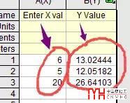 在FitlinearFindXfromY1或者FitlinearFindYfromX1的表里面輸入相應(yīng)的X或者Y值,即可以計(jì)算出相應(yīng)的Y或者X值。