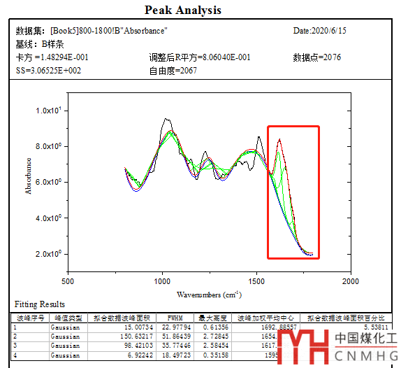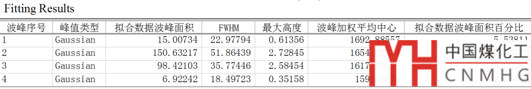 圖16是擬合的報(bào)表,下方的表格中列舉了每個(gè)峰(序號(hào))對(duì)應(yīng)的峰面積、FWHM、峰高、中心波數(shù)、面積百分比。