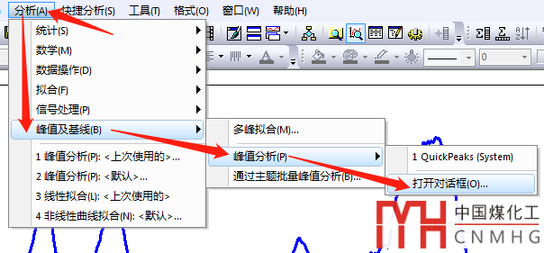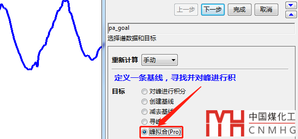 于是打開了“峰值分析”對(duì)話框,選擇“峰擬合(Pro)”。