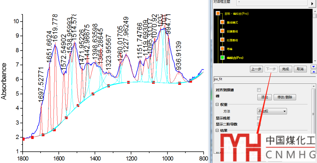 【導(dǎo)讀】天津大學(xué)的譚博士提問:基線上揚(yáng),紅外光譜分峰擬合,求積分面積百分比。多數(shù)光譜曲線多為多峰疊加,峰值分析步驟類似。