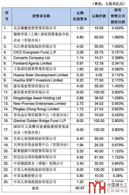 最后,境內(nèi)外共計25家投資者入圍,以現(xiàn)金1070.94億元認(rèn)購增資后銷售公司29.99%的股權(quán),其中大潤發(fā)、復(fù)興、新奧能源、騰訊、海爾、匯源等9家為產(chǎn)業(yè)合作伙伴。