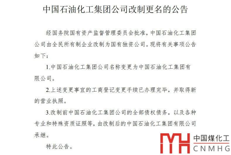2月21日,中國石油化工集團公司在上海清算所網(wǎng)站發(fā)布改制更名公告。
