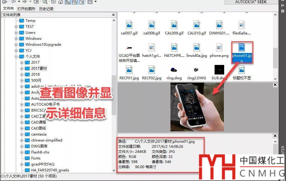 在左側(cè)文件列表中選擇CAD圖紙或圖像文件后,在下方可以顯示圖紙或圖像的預(yù)覽圖,并可以顯示文件相關(guān)的信息,如下圖所示。