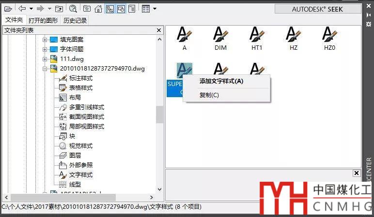 選擇添加文字樣式就會(huì)將選定的文字樣式直接添加到當(dāng)前打開的圖紙中,選擇復(fù)制后,我們不僅可以CTRL+V粘貼到當(dāng)前圖紙,還可以切換到其他圖紙繼續(xù)粘貼。