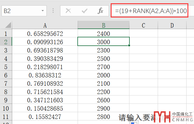 【2000-3000】中有11個(gè),所以在A列填充11個(gè)rand()函數(shù),然后在B列輸入公式:=(19+RANK(A1,A:A))*100即可