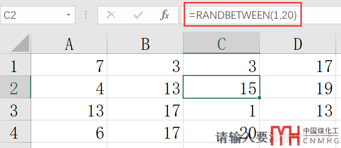 在單元格中輸入=randbetween(1,20),產(chǎn)生的是1-20區(qū)間的隨機(jī)整數(shù)