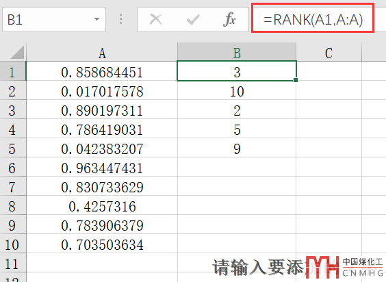 如果想得到10個(gè)不重復(fù)的隨機(jī)數(shù), 那只需要將B列填充10個(gè)即可,如下所示: