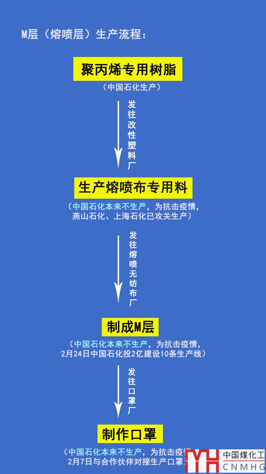 石油如何變成聚丙烯? 石油→常減壓裝置/二次焦化加氫石腦油/加氫裂化輕石腦油→乙烯裂解裝置→乙烯/丙烯→環(huán)氧乙烷/聚丙烯(專用樹脂) 口罩S層如何生產(chǎn)? S層(紡粘層):聚丙烯專用樹脂(中國石化生產(chǎn))→發(fā)往無紡布廠生產(chǎn)出S層→發(fā)往口罩廠 口罩核心M層如何生產(chǎn)?