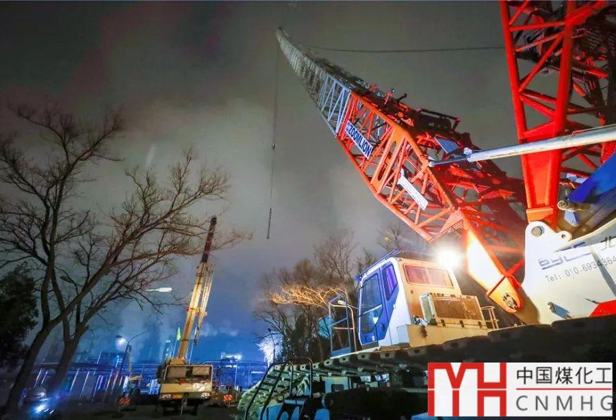 29日零時左右,主設(shè)備框架的7根立柱和鋼梁吊裝作業(yè)和操作平臺的安裝開始。經(jīng)過近6個小時的吊裝施工,立柱和鋼梁起吊安裝就位,到3月1日中午操作平臺鋼結(jié)構(gòu)組裝基本完成。從中午開始,施工人員又一氣呵成,將4臺主風(fēng)機(jī)吊裝就位。