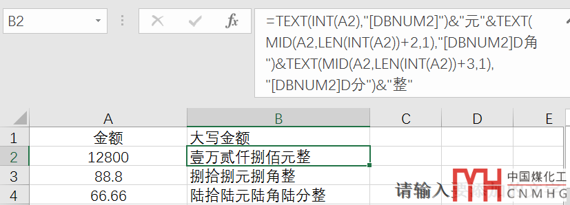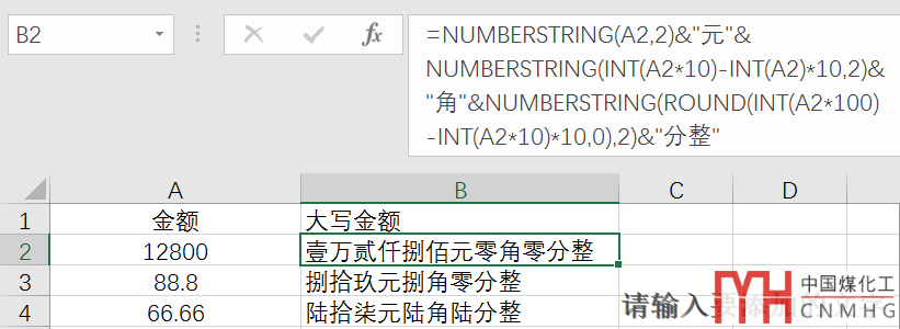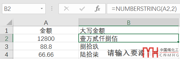 將A2單元格的12800,轉(zhuǎn)換為:壹萬貳仟捌佰