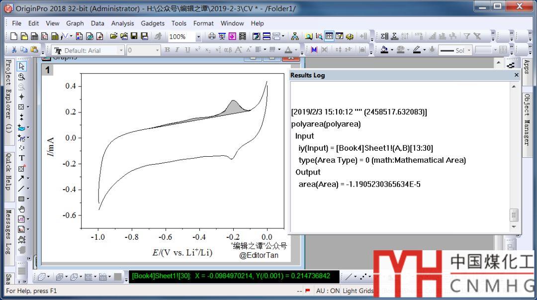 在電化學(xué)工作站(輸力強(qiáng)、Autolab、晨華CHI等)儀器測(cè)試軟件配套的數(shù)據(jù)分析軟件均可以計(jì)算橫軸以上的曲線面積。但對(duì)于基線以上的峰面積的計(jì)算,并不一定能計(jì)算出(我沒(méi)試過(guò))。更重要的是,導(dǎo)出數(shù)據(jù)在Origin中繪制陰影比較難。很多同學(xué)都是在CHI中將該軟件計(jì)算的峰面積及陰影圖截圖出來(lái),但是截圖往往在投稿中是不受歡迎的。