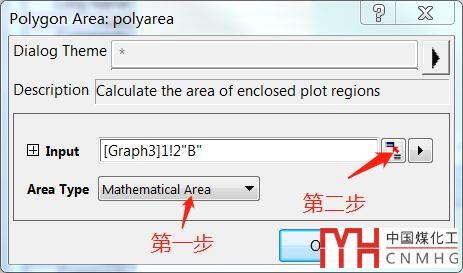 單擊某條曲線,然后點(diǎn)擊菜單Analysis→Mathematics→Polygon Area (多變性面積)打開對(duì)話框。具體操作過(guò)程如圖4所示。