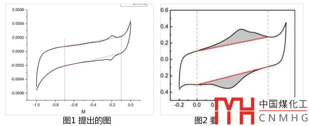 小某蟲上“柒瓣的雪”提問(wèn):如何處理電化學(xué)循環(huán)伏安曲線(CV)中氧化峰、還原峰對(duì)應(yīng)的面積。該網(wǎng)友提出將圖1處理成圖2的樣子。