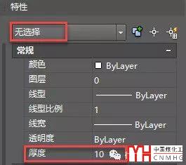 如果不選擇任何對象的時候在特性面板仍也可以設(shè)置厚度參數(shù),如下圖所示。