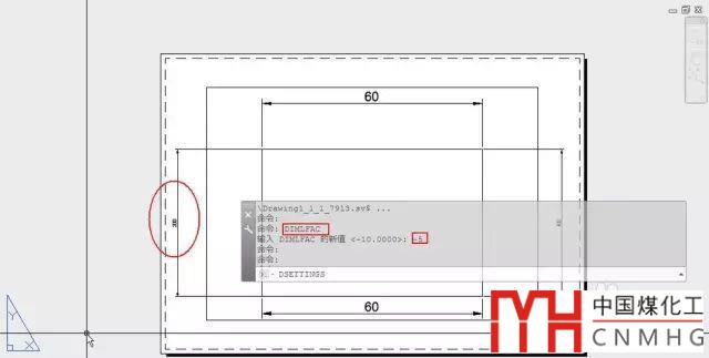 輸入DIMLFAC,回車(chē),輸入要設(shè)置的比例值,如-5,回車(chē),然后標(biāo)注,如圖所示。