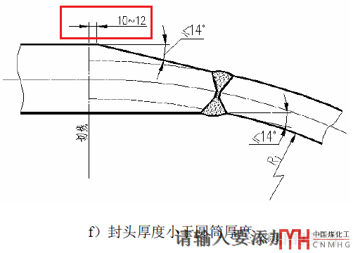 我們?cè)趨⒖紭?biāo)準(zhǔn)給的節(jié)點(diǎn)時(shí)要對(duì)節(jié)點(diǎn)適當(dāng)?shù)牧私猓鏕B/T 150.3附錄D的筒體和半球形封頭連接時(shí)下圖為啥有個(gè)10-12mm的要求。是因?yàn)榉忸^壓制和筒體卷制過(guò)程會(huì)有偏差,筒體和封頭組對(duì)也不可能很完美;為了防止加工斜邊過(guò)程中出現(xiàn)加工誤差導(dǎo)致過(guò)多的加工圓筒,導(dǎo)致削邊超越封頭切線,所以預(yù)留圓筒與切線間有10mm~12mm的直段后再削邊。